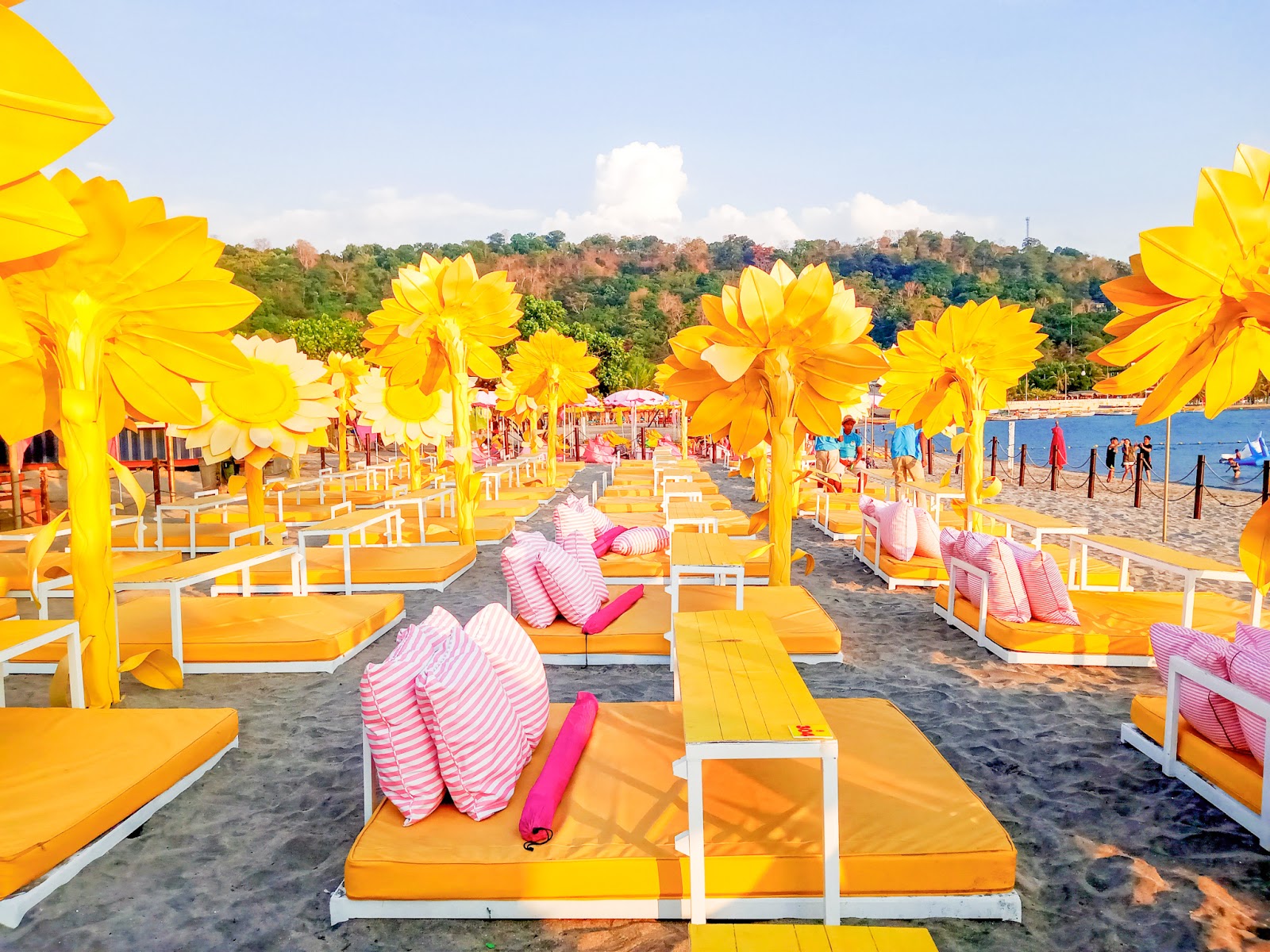 As inflatable island s official ticketing partner you can skip the ticketing lines and get first dibs on the sunflower daybeds and bali lounges so you can chill out before enjoying the water park s fun obstacles. Entrance fee is for p1500 good for 4 pax which includes pototo chips french fries and refreshing juices served on a super cute food boat. Enjoy unicorn island samba beach bali lounge and floating zoo with your choice of splash spray or soaked pass.